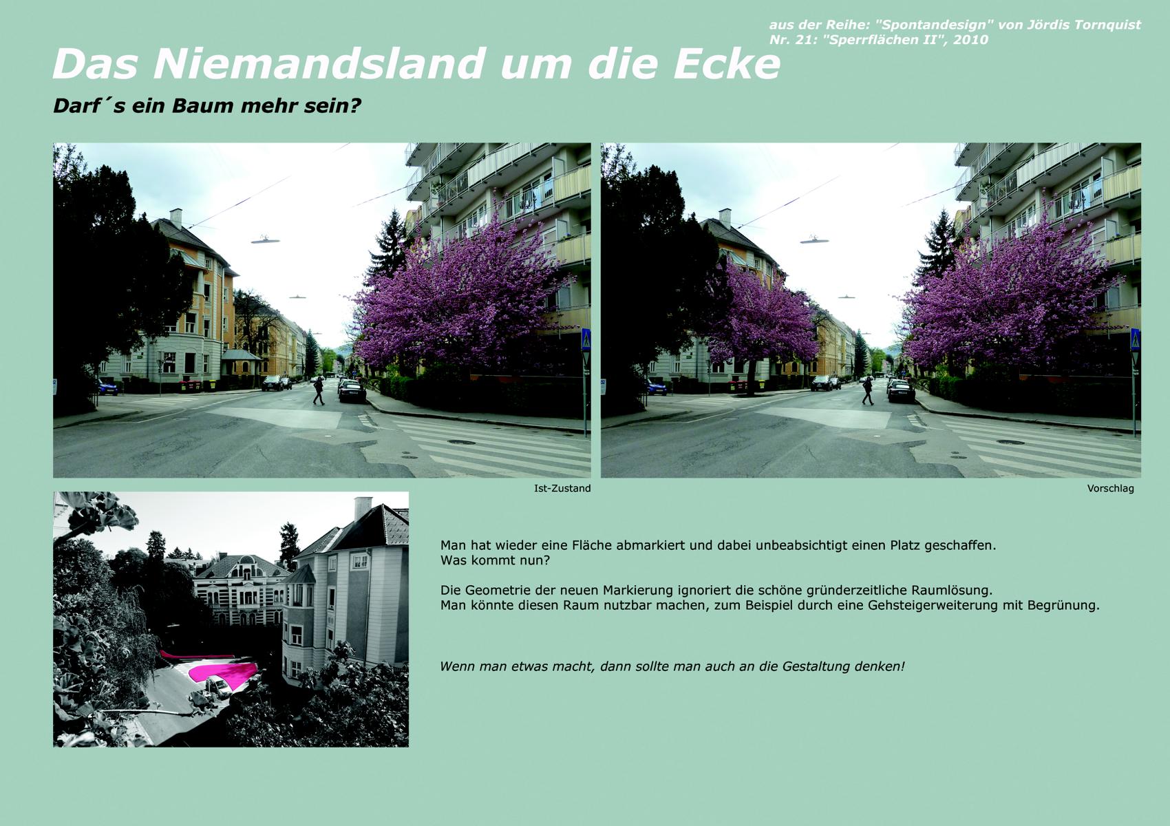 Prof. Dr. Manuela Aschauer und DI Jördis Tornquist haben der Stadt Graz am 9. und 19. Mai 2014 eine Liste über die Anzahl von PKW Stellplätzen in Grazer Vorgärten, übergeben. Als Beispiel wurden In einem Umkreis von 300 m bzw. auf Straßenlänge: 2,37 km  77 PKW Stellplätze in Vorgartenzonen gezählt. Es soll gegen diesen Missstand vorgegangen werden.