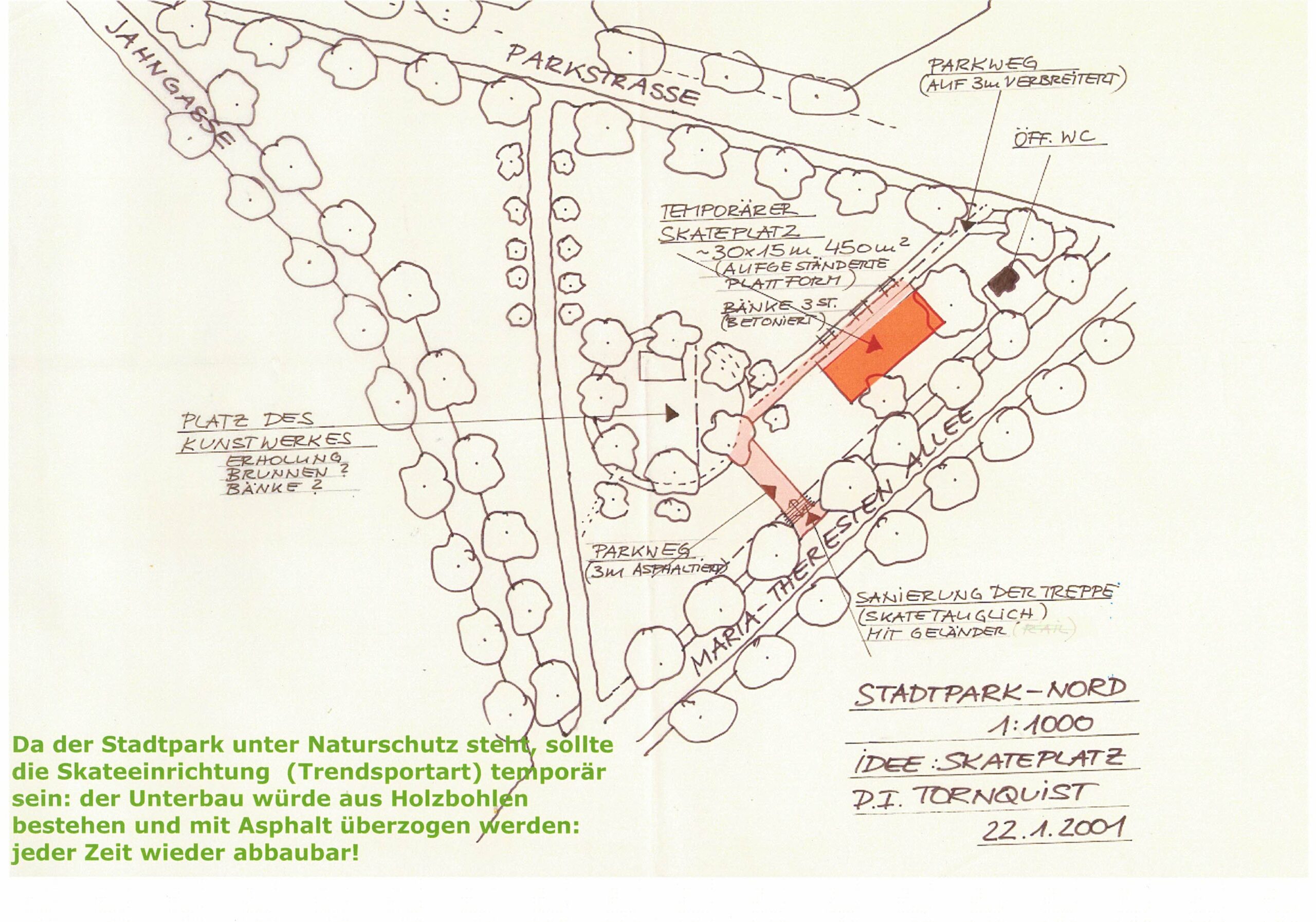 2001 – Projekt Skatepark im Stadtpark Dreieck Parkstraße, Jahngase, Maria-Thersien-Allee