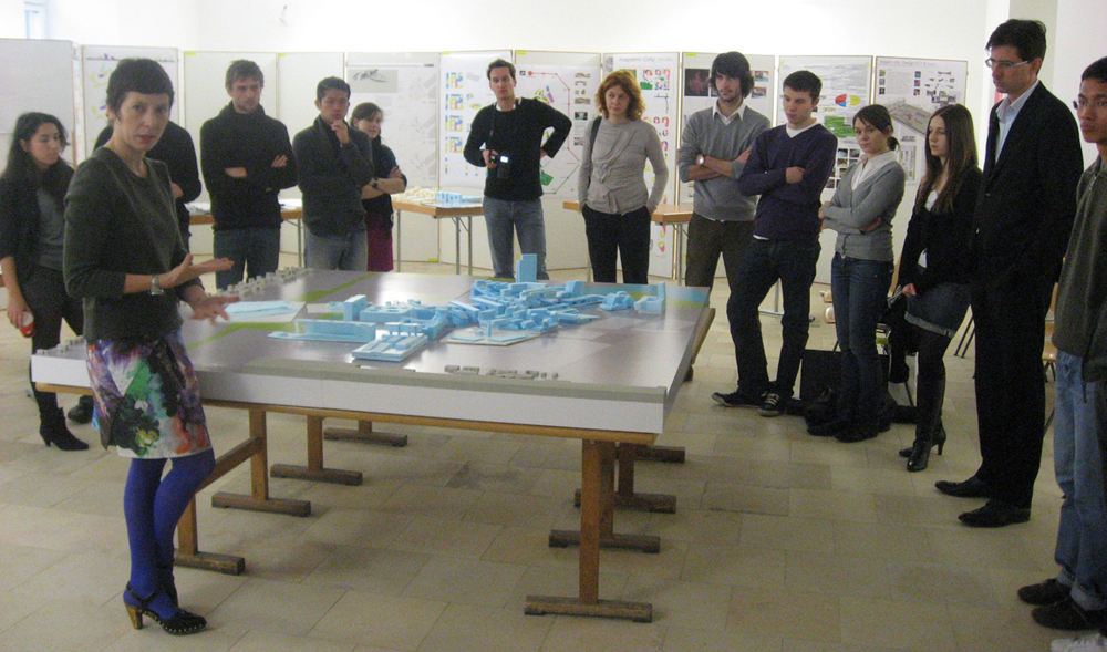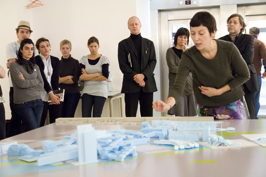 Manuelle Gautrand, französische Architektin hat an der TU im WS 08/09 als Gastprofessorin mit den Studierenden eine Entwurfsaufgabe betreut, die sich mit dem Areal des ehemaligen Flugfelds Aspern befasste.